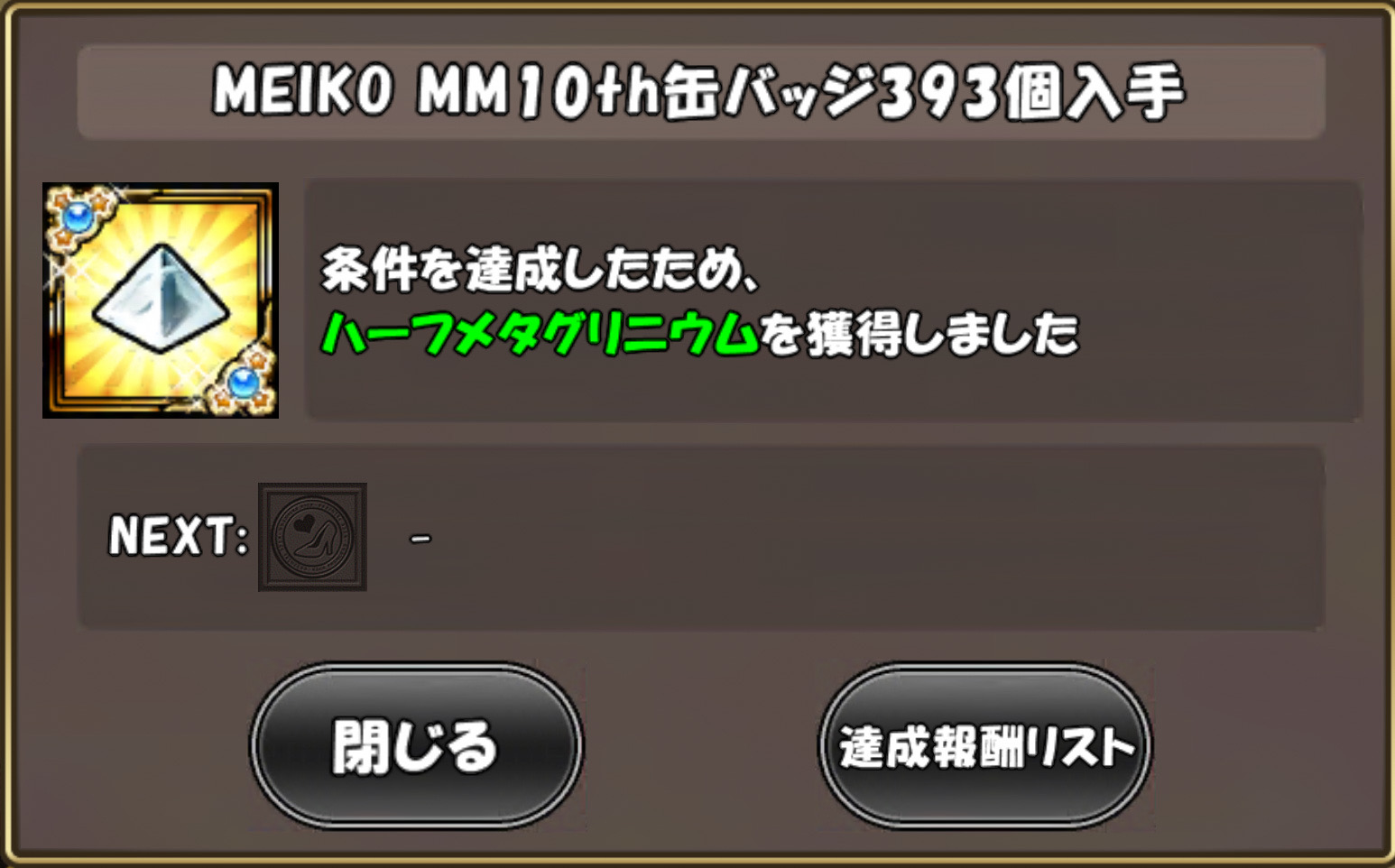 かなりゴリゴリに進めました。実は本件以上にめちゃめちゃ達成ミッションをクリアしておりまして。ただコンプリートではないのでスクリーンショットを残してませんが、いずれコンプリートしたならば少しずつご報告残します。この缶バッチが貰えるステージを恐ろしくプレイしていなかったようなのですよね。ですからモリモリイコール遊んじゃいない、ということですから恥ずかしい部分はありますが、今遊べることの喜びというものも感じています。それではまたまだありますので日記は程々にステージを周回して参ります。今から始めますとスロットもステージもモリモリですので是非遊んでみて下さいませ。普通に面白いです。