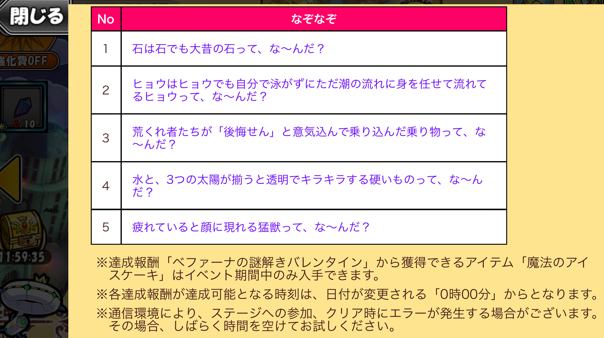 私にはなぞなぞが、ちーとも分かりません。石は石でも大昔の石ってなーんだ?ですよね。これ化石じゃないのです??化石。そこでシャーベット洞窟をクリアしてみました。......。なんらアクションなし。ナッシング。大ハズレ。じゃあどこですかーーーー!!どーなーたーかー!もうヘルプミーです。こんなにもギブアップ早くて大丈夫なのです?もうもう何やら自身の根性の無さには呆れますよ。でも他にわからないのですもの。それっぽいところありましたっけ?全然わかりません。こんなにもわからんものでしょうか。せめて1問目は簡単にして下さいよ。ちきしゃーー!誰に正解聞けばいいのですかあー!ほんとお教え下さい。いやがちで。お願いを申し上げました。そのようなわけでして、コンタクトお待ちしております。たまには投稿フォームもお使い下さい。楽しみにお待ちしております。