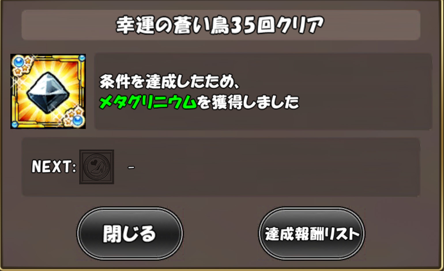 達成ミッション。確かに35回までコンプリートさせて頂きましたものー!ただ思ったのは35個目の報酬がチケットではなかったことが残念です。ここは思い切って大盤振る舞いがほしかったですよね?まあ勿論達成するまでにも貰えたことに感謝しかございませんが。ありがとうございます。これで一応青い鳥のイベントも完了致しました。致しましたが無限に稼げるステージですから、これ以上にモリモリ周回して問題はございませんが。そうなのですよね。モリモリ周回したいです。したいのですが時間が許してくれません。もっと遊びたいなぁ...そんな遊びたいケリ姫スイーツは面白いゲームです。是非是非お遊びどうぞ。