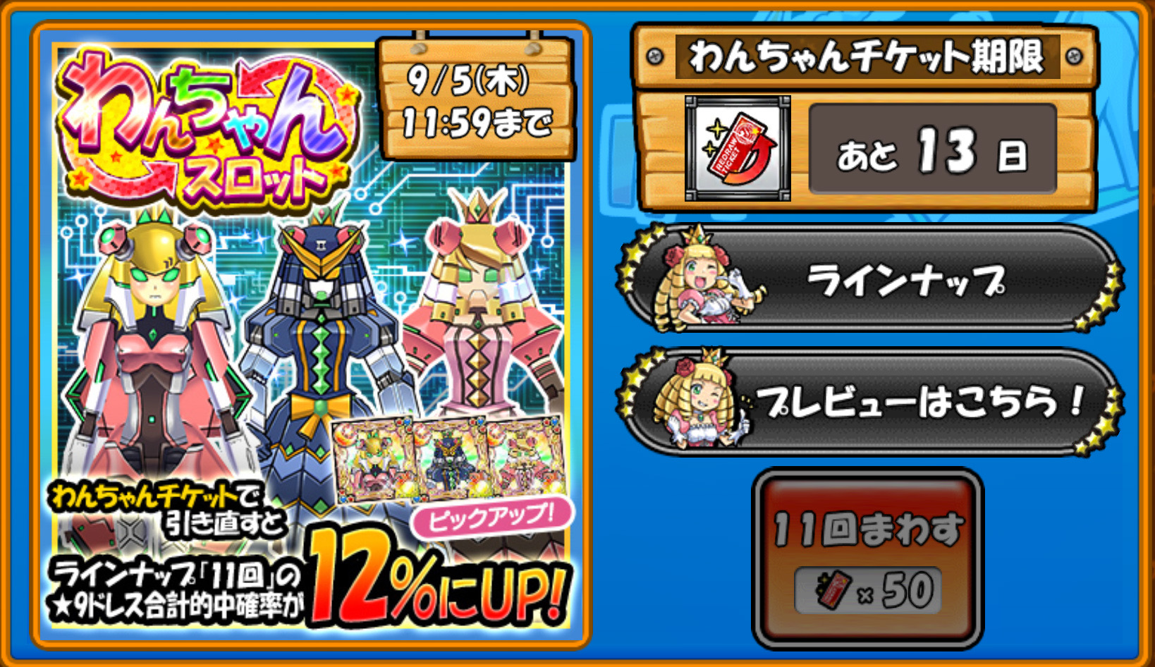 はい。無理して、わんちゃんチケットを入手したわけですが、じゃあじゃあ、そのスロットのラインナップが欲しくないものだったら全く意味がないではございませんか。ただ、私の中で実はコレの再来する可能性あるんじゃない?というドレスは予想していたのです。そしていざ更新日となりスロットのラインナップを見てみると...きたーーー!まさにソレだーー!でございますよ。わんちゃんチケットを頑張ったのは無駄じゃなかったー!と。何かと申しますと、コインプラスが現状最高数値を弾き出すドレスです。これ。新規で出たときチャレンジしたのですよ。惨敗でした。なのでです。わんちゃんあるのじゃないかな?で出てきてくれたことに感謝しかございません。ホントわんちゃん無理して取って良かった。じゃあですよ。たとえわんちゃんあったとしても、出ない時は出ません。何せ確立が上がっただけですから。確定ではございませんもの。とのことでして明日は勝負をさせていただきたいと思います。皆様もどうでしょうか。苦しいわんちゃんを取ったかたは、やるしかありませんよね。とのことでして、ワクワクの尽きないケリ姫スイーツを是非ダウンロードどうぞ。